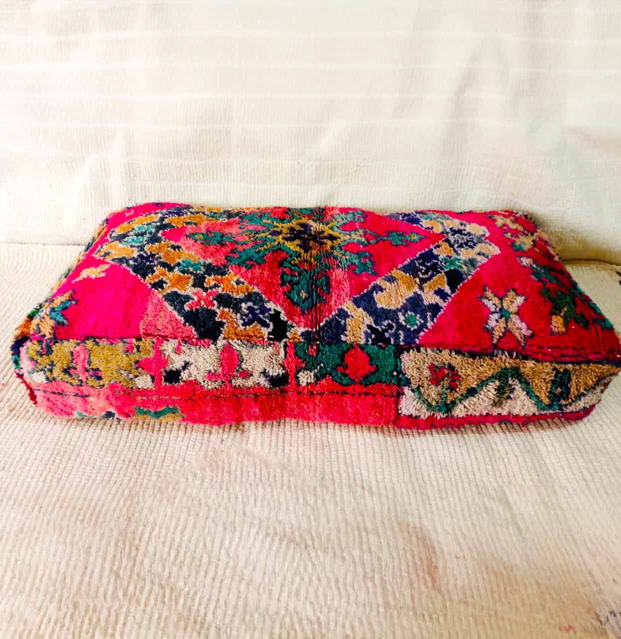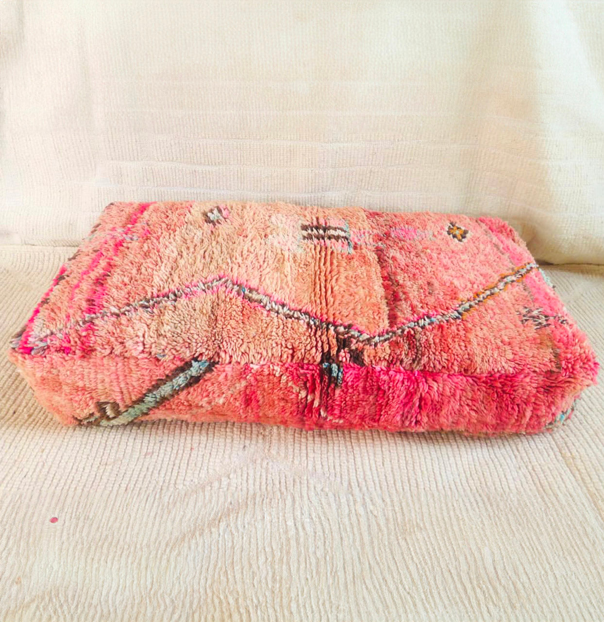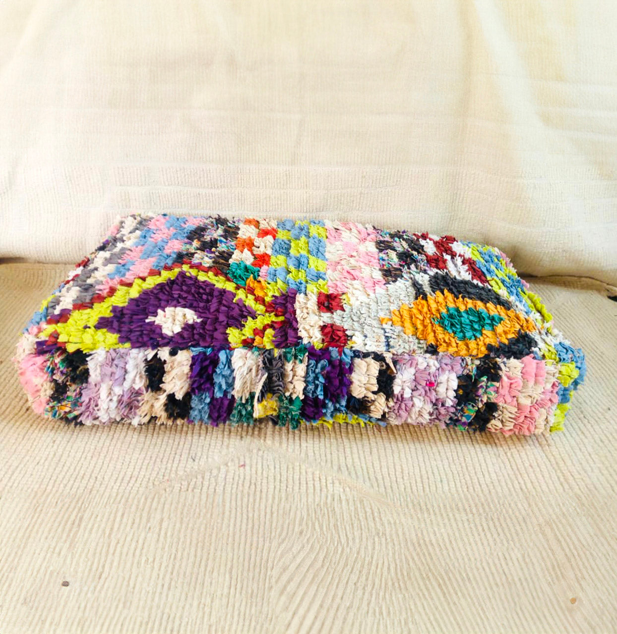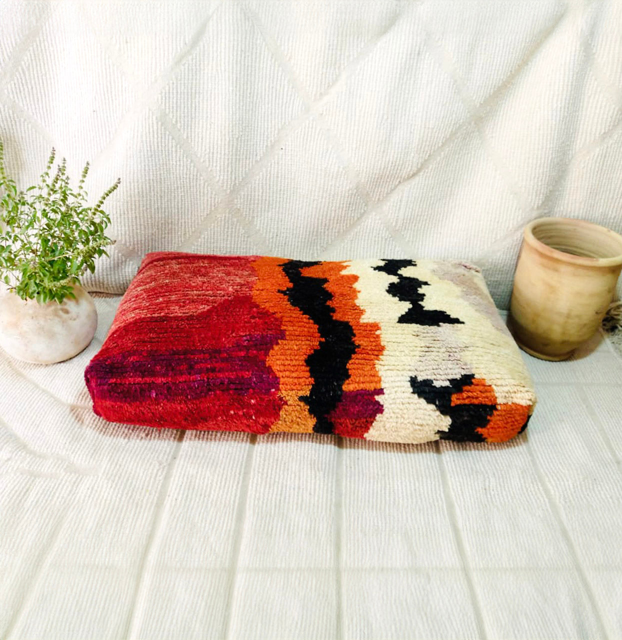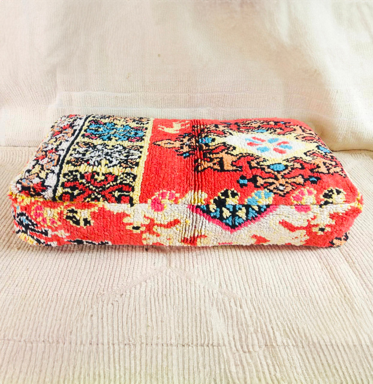 Enhance your living space with the exquisite charm of our Handmade Large Moroccan Pouf. Originally handwoven by Berber women, each pouf is a unique piece of art made from repurposed vintage Moroccan Berber rugs. These poufs bring vibrant colors, intricate designs, and luxurious textures to your home decor while being environmentally friendly.