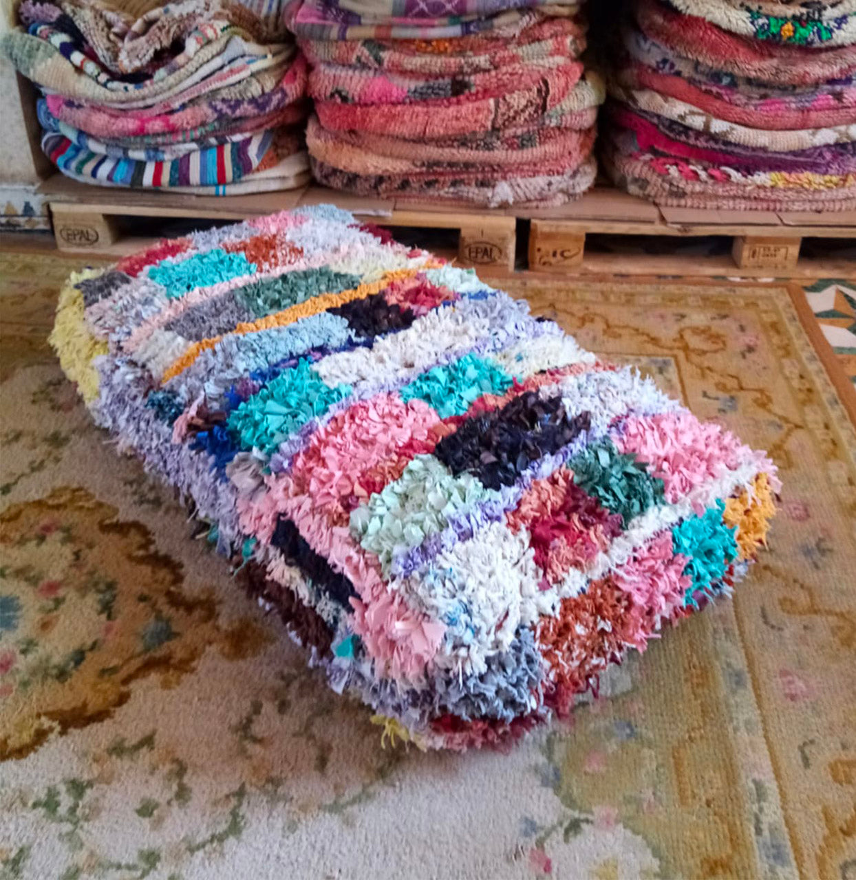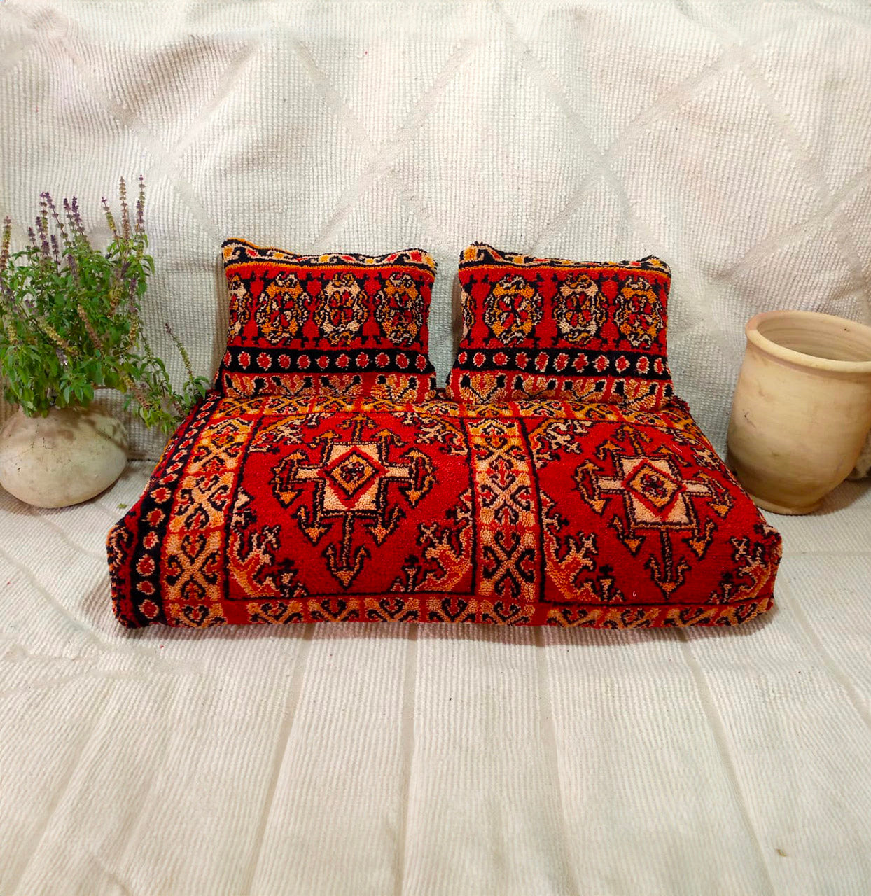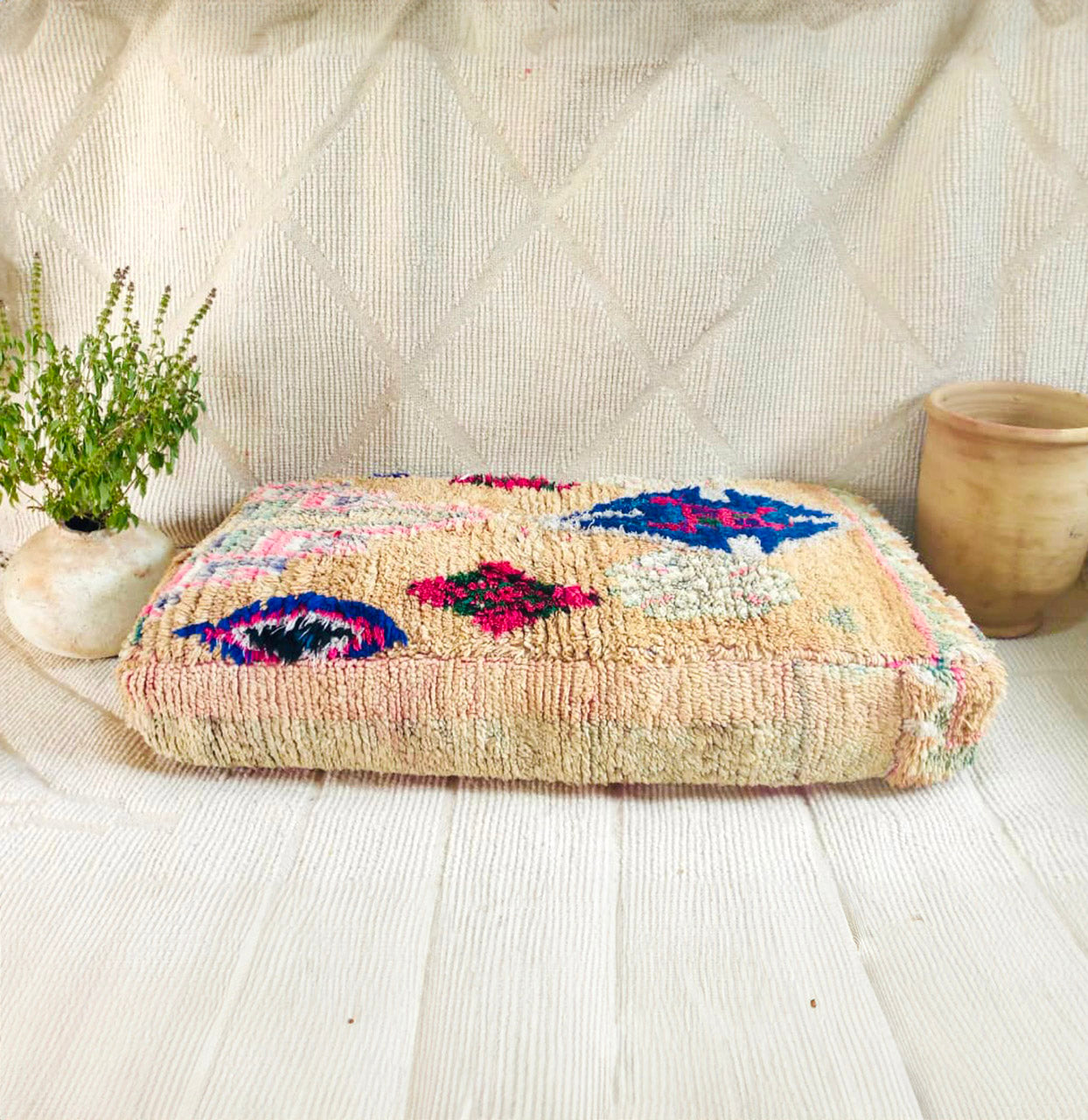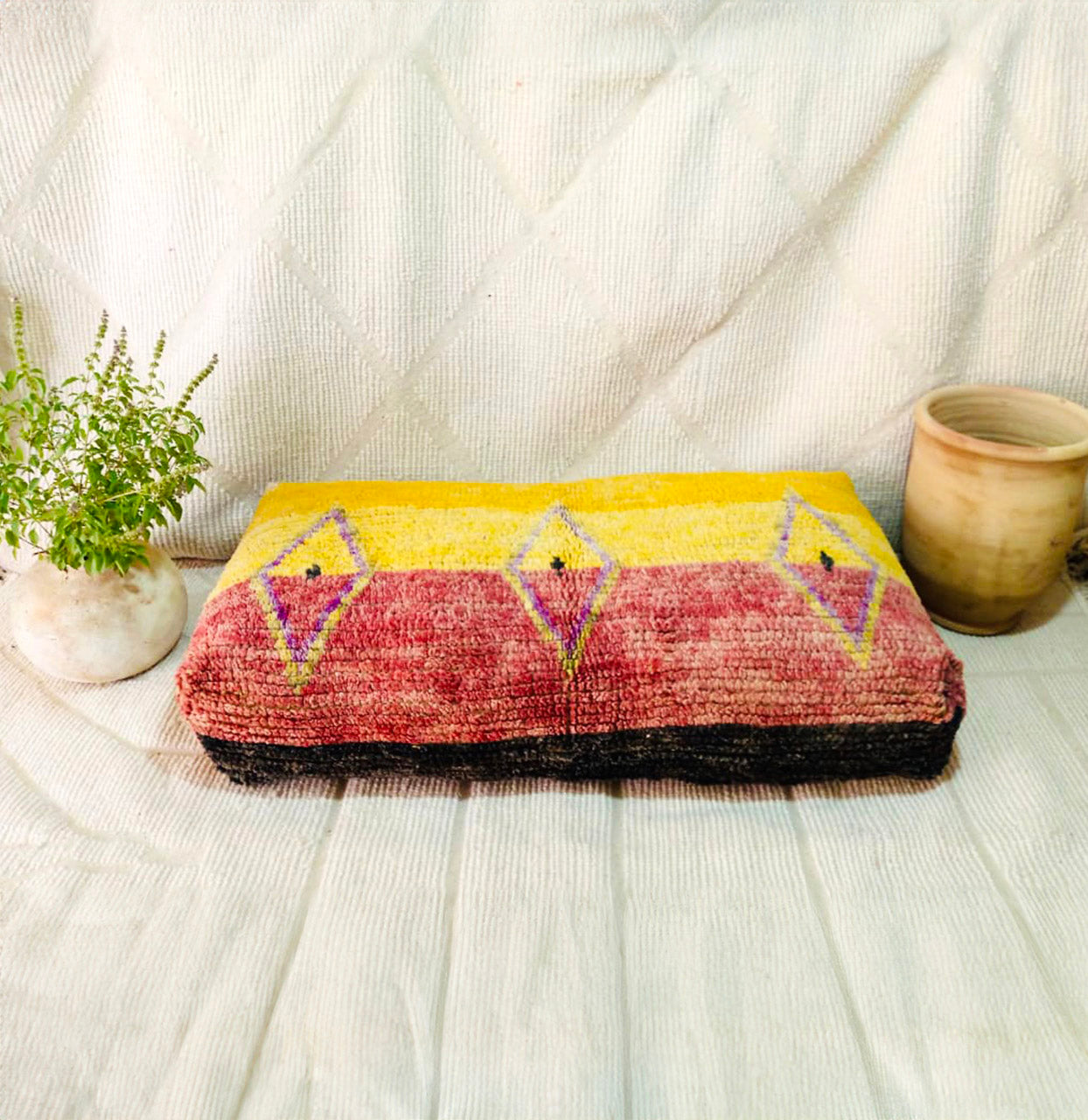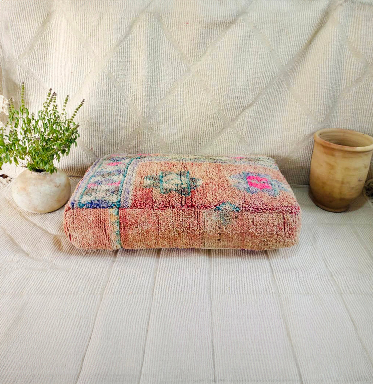 Enhance your living space with the exquisite charm of our Handmade Large Moroccan Pouf. Originally handwoven by Berber women, each pouf is a unique piece of art made from repurposed vintage Moroccan Berber rugs. These poufs bring vibrant colors, intricate designs, and luxurious textures to your home decor while being environmentally friendly.